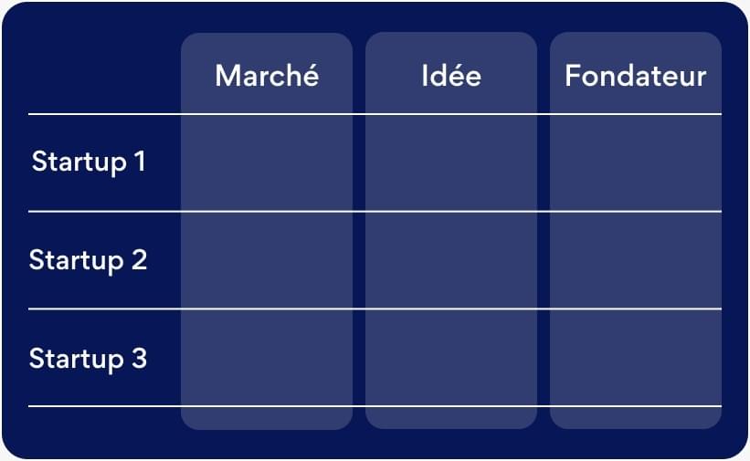 à 3 filtres essentiels : le marché, l'idée, le fondateur.